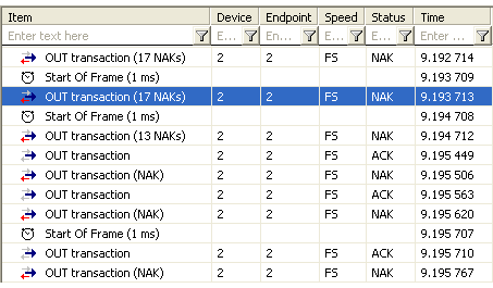 Like SOFs, consecutive NAK transactions of the same type are grouped |