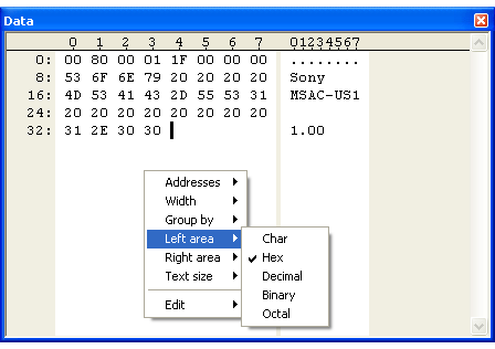 This illustration shows the data of a transaction. Display of ASCII characters is extremely practical in this case.