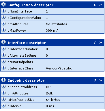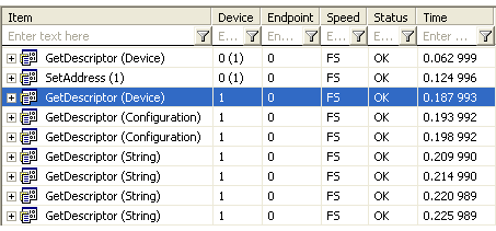This example shows a section of the enumeration of a peripheral. Thanks to high-level decoding, the user immediately obtains an overall view.