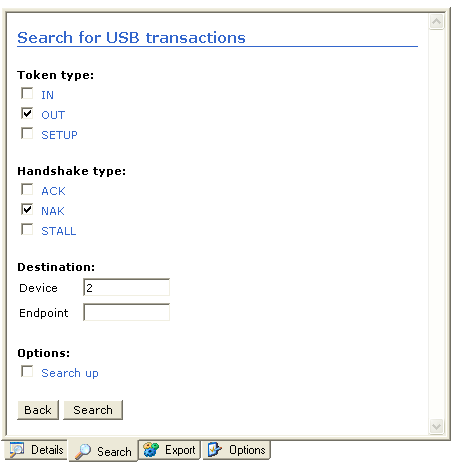 This example shows a search of all OUT transactions NAKed on the device 2. |