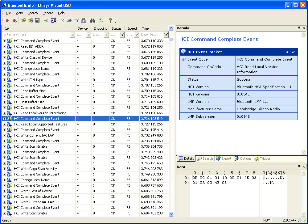Visual USB - Class Decoder - Bluetooth HCI